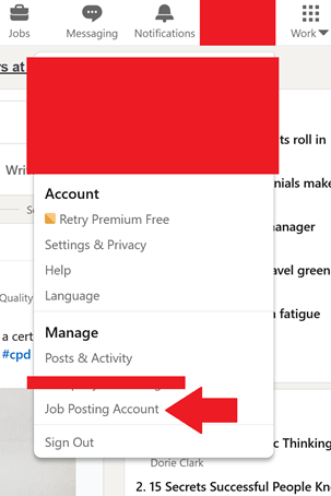 Head over to your existing job posts by clicking where it says Me, and then Job Posting Account, as shown here: