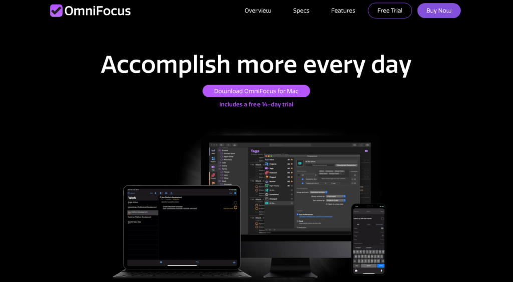 OmniFocus is heavily integrated with Apple devices, offering encrypted syncing across each platform and becoming a seamless part of your workflow, whether you are using an iPhone, iPad, or MacBook.